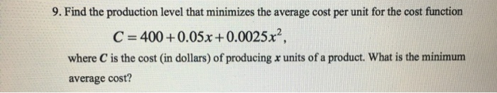 Solved 9 Find The Production Level That Minimizes The Chegg Com